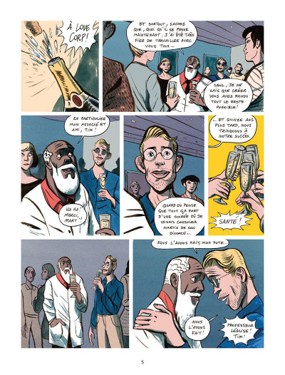 Et si la science s’en mêle, alors c’est encore mieux, même s’il faut désormais enquêter pour découvrir la réalité. Dans une sorte de dystopie Love Corp propose une société (en particulier les grandes villes et les jeunes) qui peu à peu se met à croire à un concept qu’on lui vend, à une idée qu’on lui présente comme un fait. Au-delà de l’amour, c’est le couple et le bonheur qui se croisent dans une histoire qui mêle adroitement plusieurs personnages, sans jamais en détacher totalement de ce fond qui mêle froideur scientifique et passion brûlante.