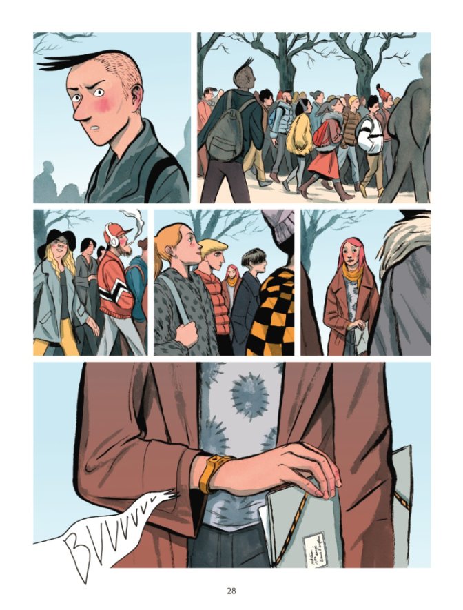 Pour ce qui est des dessins, ne cherchez pas l’érotisme dans les pages, qui n’en contiennent pas. Ici, on parle d’amour et de vivre ensemble, de se chercher du regard et de s’apprécier plutôt que de s’étreindre. Là, on dessine les contours d’une société qui n’a rien à envier aux géants du numérique, un lieu de pouvoir et d’argent semblable à tant d’autres, et des gens normaux, des étudiants timides aux femmes rondes, des vieux toujours en quête d’amour jusqu’aux adolescents encore effarouchés par leurs désirs. La variété, l’éclectisme de ces différents personnages est un plus pour l’œuvre, qui n’a pas hésité à l’afficher en couverture, comme un rappel de ce qui suit : l’amour n’est pas un, mais multiple.