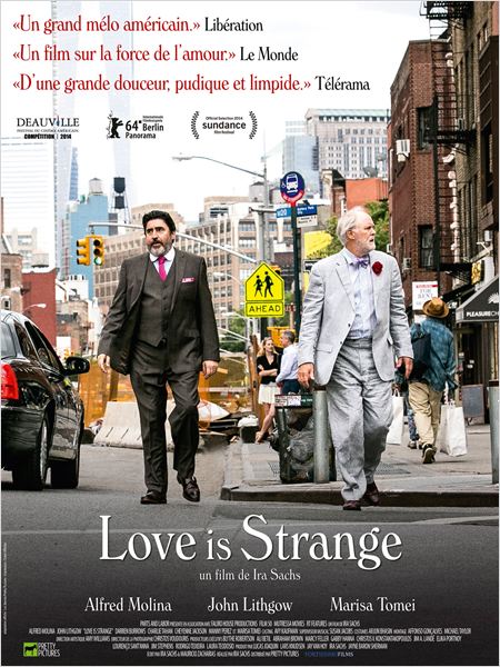 Ce traitement dé-dramatisé d’un sujet pourtant actuel et potentiellement "dramatique", doit beaucoup aux comédiens, tous impeccables et très à l’aise sous le regard bienveillant du cinéaste. Il garantit à l’oeuvre un certain humour, dans la mesure où George et Ben font, chacun de leur côté, la « découverte » un peu naïve du quotidien des autres (George est hébergé par un couple de gays fêtards, Ben par son neveu, sa femme et leur fils, qui passent leur temps à se disputer). Le drame semble alors se propager, se diffracter, ce qui donne lieu à des épisodes comiques et réjouissants. Alfred Molina et John Lithgow en rayonnent d’autant plus. Aussi appréciera-t-on Love is strange comme une oeuvre douce-amère, moins sur l’étrangeté de l’amour, que sur ses vertus étranges face aux aléas divers que la vie réserve.