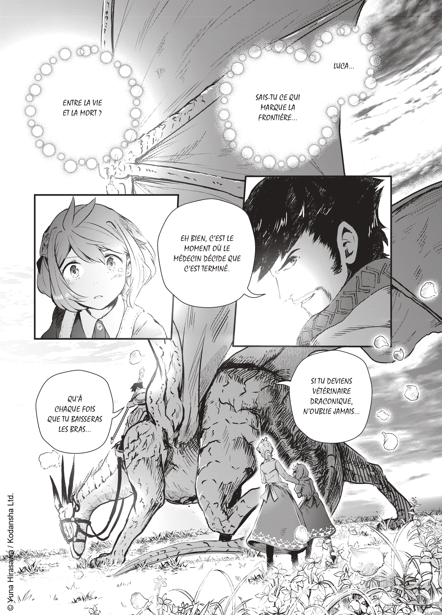 Critique : Voici la nouvelle série de Yuna Hirasawa, qui nous avait régalé avec sa très belle série Terrarium ! Nous attendions donc beaucoup de cette nouvelle série, et nous avons pris plaisir à retrouver la mangaka dans un récit tranche-de-vie qui cette fois-ci se déroule, non pas dans un univers de science-fiction mais dans un univers de fantasy ! En effet, nous suivons Luciana, une jeune fille qui rêve de devenir vétérinaire au sein de l’armée. Mais pas n’importe quel vétérinaire, une vétérinaire draconique !