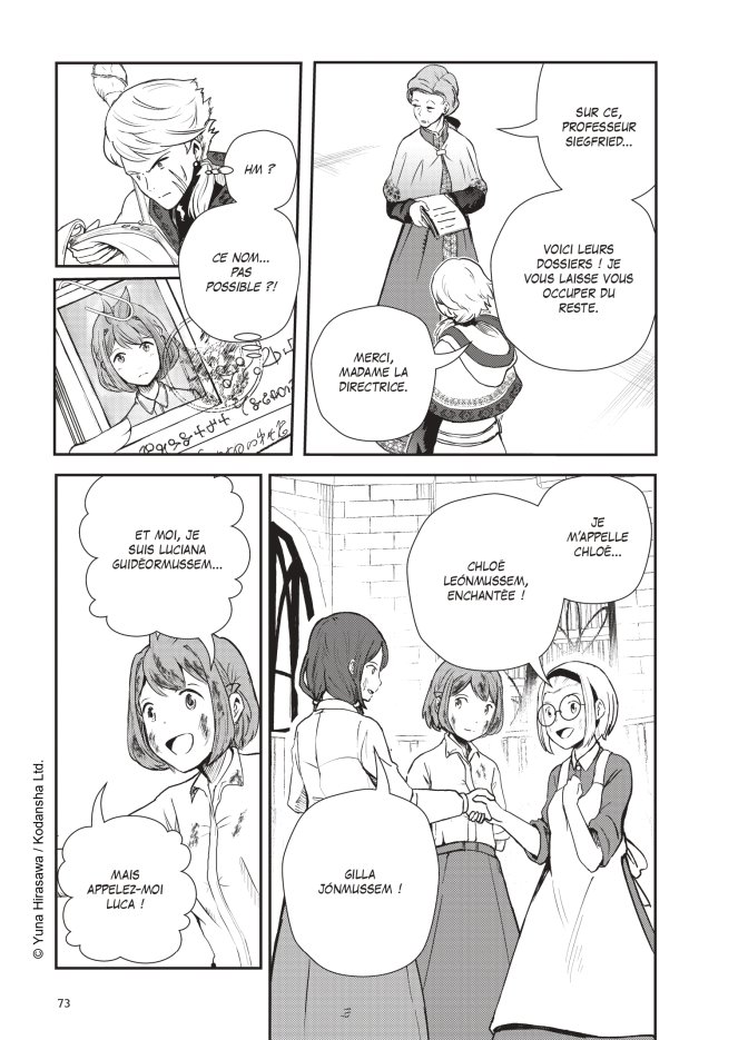 L’histoire commence lorsque Luca arrive à Kogniel, capitale dans laquelle elle doit poursuivre son cursus universitaire dans une école qui s’apparente à un internat de médecine avec des cours et des missions pratiques. On découvre rapidement les deux héroïnes qui partageront la vedette avec Luca, Chloé et Gilla. Même si le trio de protagonistes est un trope classique, tout comme les personnalités des trois jeunes filles, le traitement qu’en fait Yuna Hirasawa est très juste et nous a embarqué dès les premières planches. D’autant que de nombreuses sous-intrigues apparaissaient au fur et à mesure de notre lecture donnant plus de substance à l’histoire …
