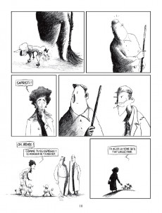 Pour asseoir cette histoire pleine de sursauts, le dessin de Stéphane Senegas partait d’un trait simple : une tête de poire, deux petits points pour yeux, un sourire plutôt terrifiant. Mais cette façade cachait de plus amples développements. Il ne s’agit de la barbe à venir du héros éponyme, mais bien des personnes qui l’accompagnent, autant de témoins de ce destin aux allures différentes Du petit garçon solitaire à la tenancière mûre et ronde de bar, il y a des fêlures dans chacun qui de ressentent dans chacun des coups de crayon qui les composent.