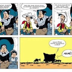 Lucky Luke va accompagner des migrants juifs à travers le Far West. Un album osé et réussi avec un humour bien senti et bien placé, une BD qui fait rire plus vite que son ombre.