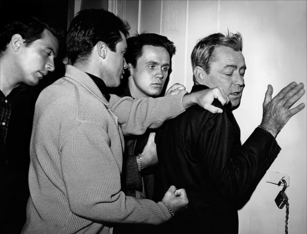 D’autant que le film est porté par une belle interprétation : Rod Steiger, sobre en policier opiniâtre, concurrence un Alan Ladd vieilli mais toujours efficace. Le voir s’entraîner à tirer est comme une allusion à son passé cinématographique. D’une certaine manière, Lutte sans merci peut être vu comme un documentaire sur un acteur en fin de carrière (c’est son avant-dernier film), auréolé d’un prestige déjà lointain en 1962 : Ladd n’est plus le cow-boy prestigieux de L’ Homme des vallées perdues ou le sombre héros de Tueur à gages et, face à une bande de jeunes, il ne peut plus se battre. Symboliquement d’ailleurs, il boite tout au long du film alors que le « méchant » affiche une virilité agressive et arrogante. La relève, ces jeunes riches et oisifs, porte en elle une violence qui ne se justifie plus ; les dialogues le soulignent, la violence d’antan reposait sur une certitude, celle de l’obligation ou de la raison. Mais les délinquants des années 60 n’ont pas d’idéal, simplement une « haine » aveugle, gratuite ; ils agissent sans voir les conséquences de leurs actes. En ce sens le visage fatigué de Ladd apparaît comme un symbole de cette incapacité à comprendre et à réagir.