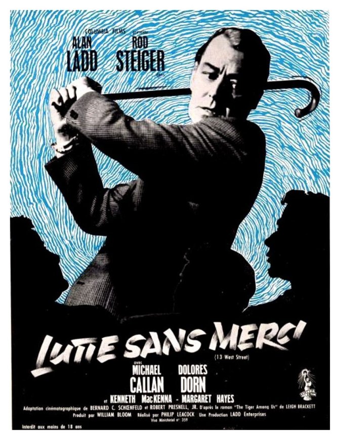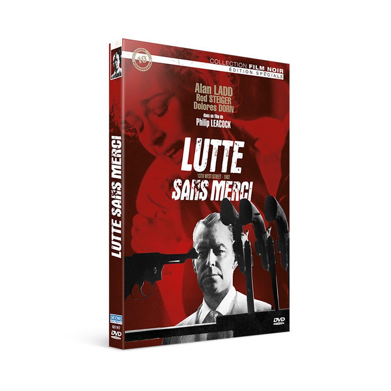 Notre avis : Il y a une raison d’être déçu par Lutte sans merci, ce que souligne François Guérif dans les bonus, c’est la mise en scène de Philip Leacock : avec un tel scénario, on rêve de ce qu’aurait donné le film s’il avait été plus nerveux, plus soigné, avec un vrai point de vue ou davantage de confiance en l’image. Leacock souligne ou étire, sans jamais trouver le bon rythme peut-être faute d’un montage trop lâche. Il y a pourtant de belles séquences : la seconde poursuite ou quelques plans d’extérieurs, par exemple, ou de belles idées, comme le nom du détective qui apparaît en ombre, le gros plan sur l’arme dans la vitrine. Mais que de faiblesses par ailleurs, jusqu’au tic gênants qui vient insister sur un gros plan par un travelling avant.