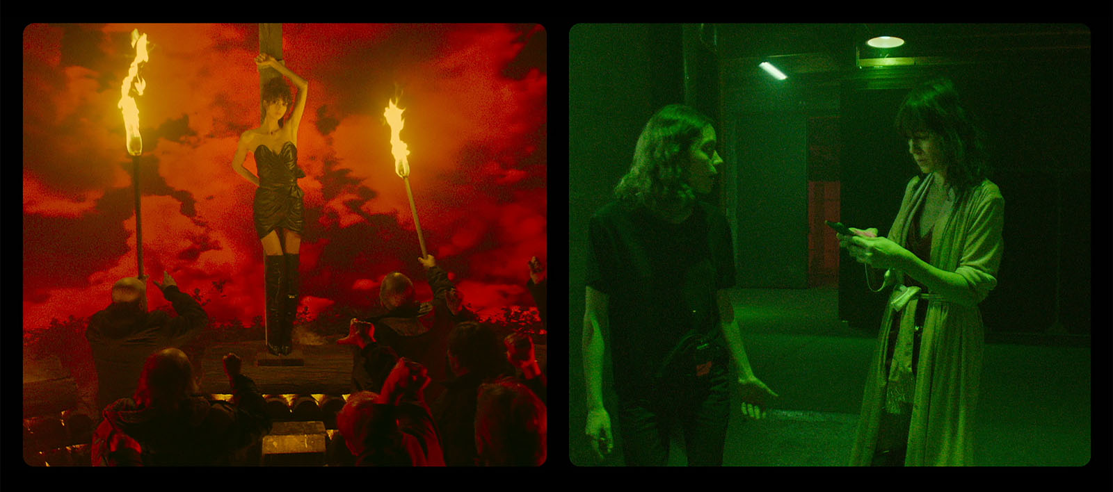 Critique : Il faut l’épaisseur et l’expérience d’une Charlotte Gainsbourg et d’une Béatrice Dalle pour oser jouer son propre rôle. Les deux comédiennes échangent sur leur filmographie et l’impudeur où certains tournages les ont conduites. Personne ne peut résister devant la fragilité de Charlotte quand elle fait allusion à l’immense film de Lars von Trier Melancholia, qui a conduit son personnage sur le bûcher de la fin du monde, ou devant la voix rocailleuse et foudroyée de Béatrice, qui témoigne autant de sa carrière que de ses égarements personnels. Cette dernière incarne une metteuse en scène, s’apprêtant à filmer la condamnation au feu de sorcières, dont Charlotte Gainsbourg qui va interpréter l’une des condamnées. Gaspar Noé s’efface pour donner la voix à ces deux femmes, l’une comédienne, l’autre cinéaste, mais seulement pour un temps, car très vite, il reprend la main, comme il sait tellement bien le faire, en s’emparant du film réalisé pour produire sa propre œuvre.