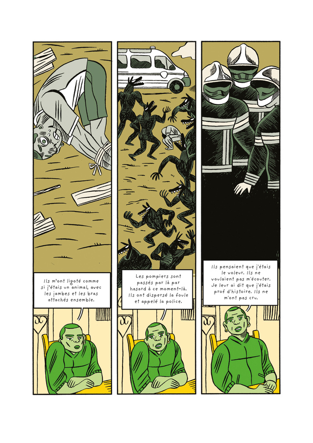 Si elle est bien ficelée, la trame narrative de Lynchages ordinaires aurait mérité d’être enrichie pour donner davantage de relief au personnage afin de renforcer le sentiment d’identification et d’immersion du lecteur. En revanche, les dessins aux couleurs chaudes d’Héloïse Chochois et de Victoria Denys s’avèrent extrêmement percutants. Les deux autrices recourent volontiers à la métaphore dans leurs dessins pour animaliser la foule lors de ces actes de justice sommaire. Les dessins jouent très bien sur le contraste entre la chaleur du carnaval et ses déguisements grotesques et la part sombre de ces événements incarnés par les lynchages et la violence. Le récit, découpé de façon très efficace, est scandé par de belles doubles pages où les dessinatrices déploient leur talent de mise en scène.