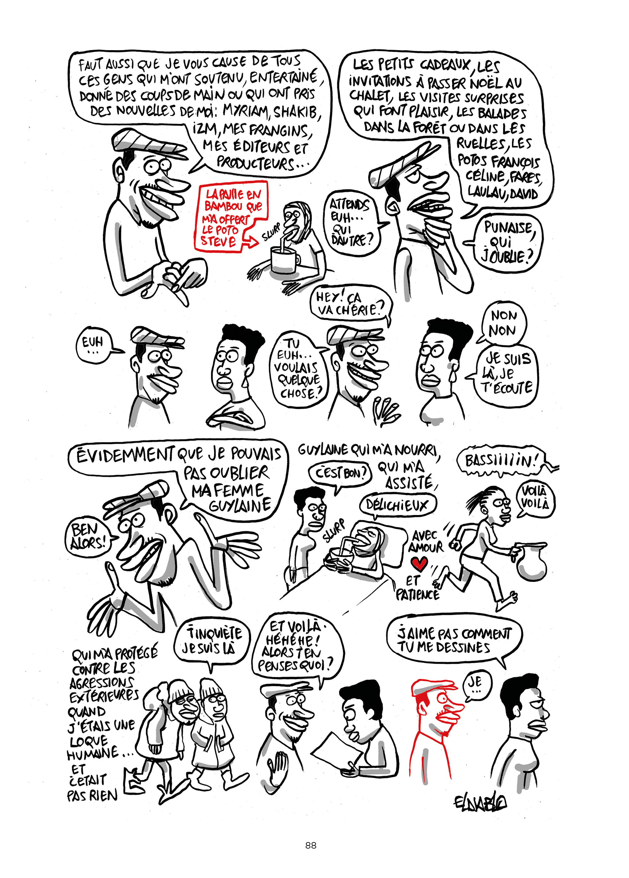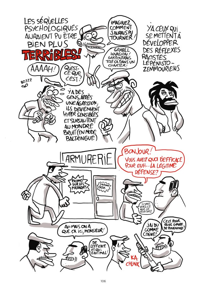 Une bande dessinée pleine d’humour et d’autodérision alors que le sujet n’est a priori pas drôle : une agression et ses conséquences, mais aussi un beau parcours de rétablissement et résilience.