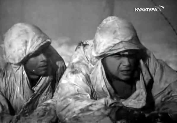 Alternant scènes de batailles (la vision saisissante des infimiers rampant dans la neige en longs manteaux blanc à capuche ; l’assaut de l’immeuble éventré, d’une violence sèche) et moments de pause (où on mange ou converse) retrouvant, en mineur, comme un écho atténué, le ton enjoué du début, Raïzman réussit à faire sentir toute l’horreur, le caractère invivable de l’exposition permanente au danger tout en maintenant une espèce de sérénité, et même d’optimisme envers et contre tout.
