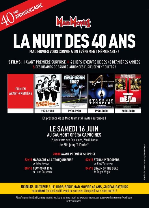 A l’occasion des 40 ans du mythique magazine du fantastique et de l’épouvante, qui a repris un très bon virage dans les années 2000, une nuit inoubliable est annoncée au Gaumont Opéra de Paris...