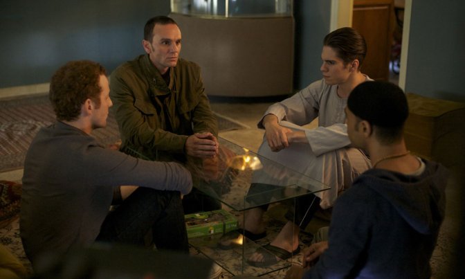 Made In France a pour cadre la formation d’une cellule terroriste. La particularité est de nous amener, non pas dans un réseau nébuleux et bien organisé, mais à contrario au plus bas de l’échelle. Ainsi, on contemple avec crainte et stupéfaction l’endoctrinement et la radicalisation de jeunes Français dans une guerre qu’ils qualifient de « sainte ». La signification même du mot « jihad » renvoie d’ailleurs à cette notion de lutte pour atteindre un but précis, dont la violence est indissociable. Au cœur de l’histoire, on suit le personnage de Sam, un journaliste intrépide et tout aussi inconscient, qui infiltre le milieu en y voyant le sujet de son prochain livre. La mise en forme de ce personnage est justement l’un des points forts du film. On peut en effet le voir comme un antihéros, un homme ordinaire de confession musulmane qui s’enfonce malgré lui dans une situation dangereuse et irréversible. Le spectateur ressent donc parfaitement son angoisse face à la perte de contrôle de la situation, mais aussi son empathie vis-à-vis de ces jeunes qui prennent part au combat.