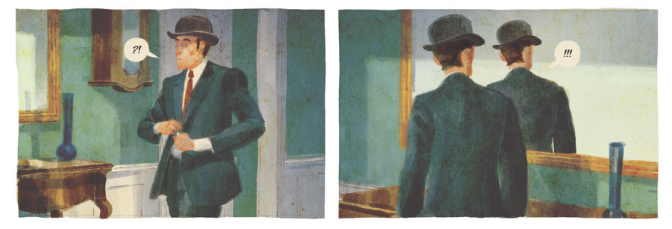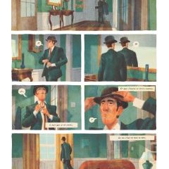 Quel bel album ! Il est tellement rare de découvrir la vie d’un peintre de façon originale, cet album fait honneur au travail magnifique de Magritte. Le scénario commence par le hasard, le hasard d’un homme qui achète sans le savoir le fameux chapeau du peintre René Magritte. Sa vie va basculer dans la folie entre hallucinations et rencontres improbables. A l’instar d’une Alice au pays des merveilles, le héros va plonger dans ce monde fait de créations, de peintures, baigné par le fort caractère du peintre. Zabus au scénario et Thomas Campi au dessin nous livre une partition picturale brillante, une plongée dans l’univers et la tête du peintre Magritte, tout à fait passionnant.