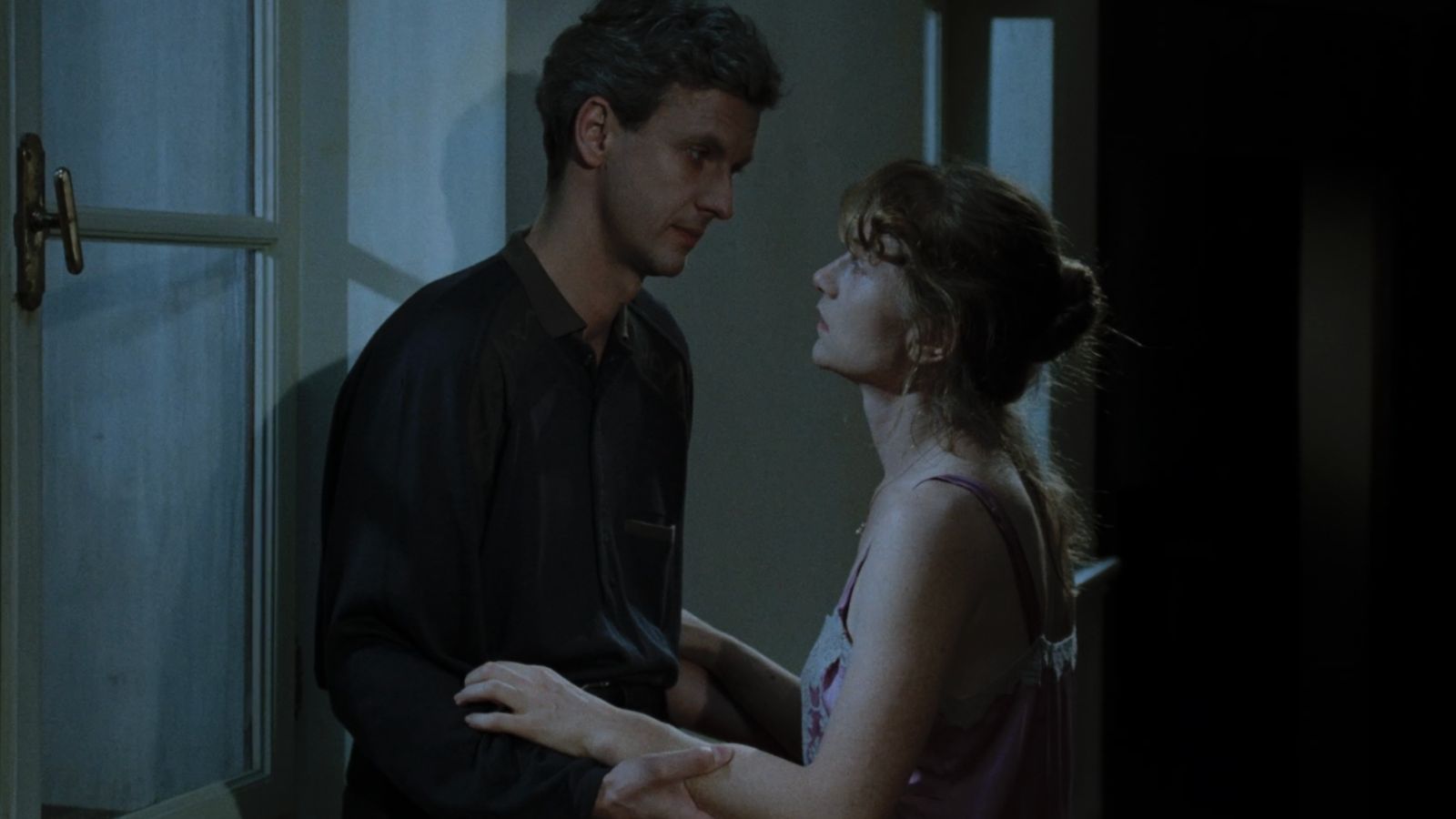 Le film accentue la virulente charge féministe et anti-patriarcale du roman en introduisant dès le pré-générique un père violent et incestueux (joué par Fritz Schediwy) qui frappe sa fille dans une terrifiante scène de conflit entraînant une mort d’homme (Malina déclarant à la police : une simple fête de famille, les gens sont un peu surexcités). Cette figure de troisième homme (titre de la partie centrale du roman), grotesque et terrifiant, resurgit tout au long du film. Les deux autres, Ivan (joué par l’acteur hongrois Can Togay), l’amant fuyant les conflits et les sentiments trop extrêmes, et l’énigmatique Malina (impeccable Matthieu Carrière), alterego de la protagoniste dont on croit d’abord qu’il est son sur-moi bénéfique et rassurant avant de le soupçonner d’un étrange double jeu, sont-ils autre chose que des projections de cette femme sans nom qu’incarne une Isabelle Huppert parlant avec la voix de voix de Lisa Kreuzer, mais stupéfiant comme jamais par la concentration et la liberté ludique de son jeu ?
