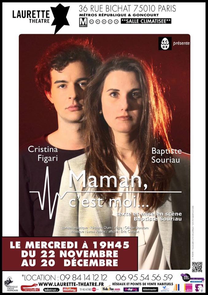 Notre avis : A l’écart des endroits renommés aux affiches prestigieuses pullulent dans Paris nombre de théâtres discrets hébergeant de bien jolies pépites à découvrir d’urgence. La pièce Maman, c’est moi façonnée de main de maître par l’orfèvre Baptiste Souriau, un jeune homme fabuleusement doué, tout à la fois auteur, metteur en scène et comédien, est l’une de celles-là.