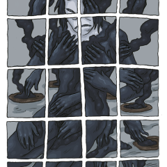 Entrainée dans le tourbillon de la magie et du pouvoir, sa vie se fige en un mouvement perpétuel comme l’anguille qui s’enroule autour de sa proie et qui se mord finalement la queue.