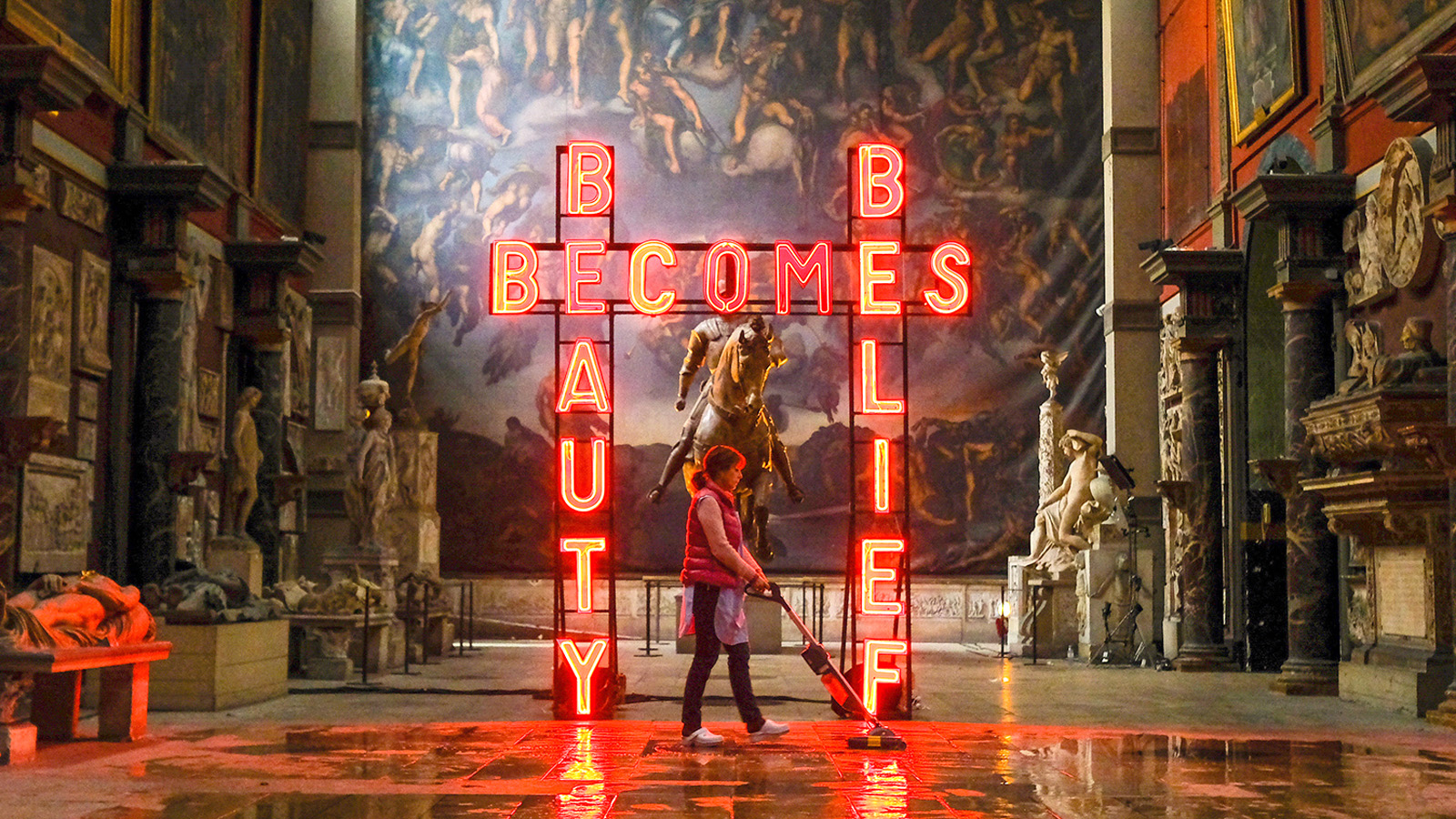 Maria rêve est un film sensible et délicat qui offre, en pleine crise de salles vides, un petit moment simple de rires et de joie. Karin Viard y est pour beaucoup. Elle endosse son personnage avec une véritable douceur. C’est un rôle qui tranche avec des personnages parfois vulgaires qu’elle a eu l’habitude de jouer. Maria est une sorte de Fantine des temps modernes. Il y a de la bonté, de l’amour, de la naïveté dans son jeu. Mais il y a surtout la volonté de se sortir d’un quotidien un peu triste avec un mari qui la regarde à peine, une fille qui lui a tourné le dos et une activité professionnelle peu valorisante. L’héroïne se confronte avec un univers artistique qu’elle ne connaît pas. Elle y côtoie des œuvres parfois de bon goût, et d’autres plus étranges. Les étudiants qui déambulent dans les couloirs semblent des extraterrestres pour elle, jusqu’à ce qu’elle fasse la connaissance d’une apprentie artiste, pleine d’ingéniosité. Et puis, il y a Hubert, ce mammouth des Beaux-Arts, comme tout le monde dit ici, et qui va transformer son existence.
