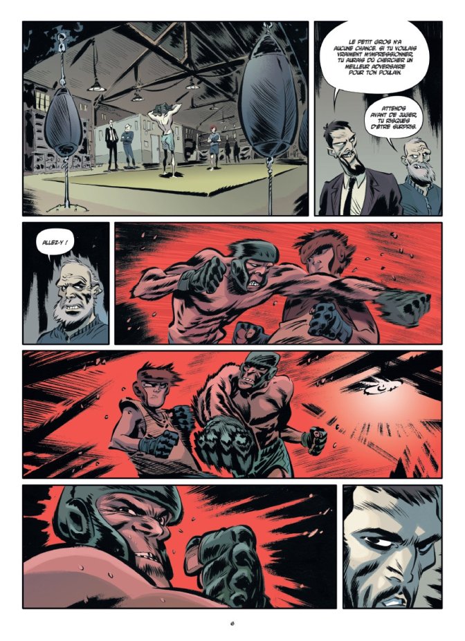 Et, comme si les traits de Javier suivaient cette pensée, les dessins de Marqués s’affirment et se précisent au fil des cases. On perçoit d’avantage les lignes et les expressions de chacun. La palette de couleur est sombre et c’est souvent le rouge, la couleur du sang et de la violence, qui vient illuminer les planches dont les teintes sont principalement celles du noir, plus au moins sombre, comme l’avenir des protagonistes. Mais comme le précise Raule, il y a toujours de l’espoir dans les bonnes histoires, et celle de Damiàn et Javier en est assurément une.