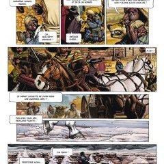 Déjà sombre, l’ambiance de la série Marshal Bass tombe encore d’un ton avec un album en forme de longue piste, et avec un final qui raccroche la force de The Revenant avec la fougue de Django Unchained. Le titre l’indique, le nom est le point central de ce tome, avec un indien qui n’en a pas reçu, sa mère ayant expiré avant que le père ne revienne. Si Delilah l’appelle Samson, c’est que la trahison et la vengeance, l’amour et la haine, sont bien au centre de l’histoire. Ces émotions l’étaient déjà dans le Livre des Juges, elles sont d’actualité, et si le décor fait froid dans le dos, si les chiens et les hommes n’ont plus de grandes différences, alors tout est réuni pour promettre un bain de sang, qui pourrait bien se transformer en rivière. Les deux premiers tomes avaient lancé un personnage principal sans remords inutiles, pétri d’une justice intérieure et d’une volonté farouche, mais la complexité de ce troisième tome proviendra bien des personnages secondaires, qui lui transmettront leurs défauts et leurs rares qualités, pour aboutir à quelque chose bien loin de la ruse d’Ulysse, mais avec une odyssée mouvementée qui y ressemble.