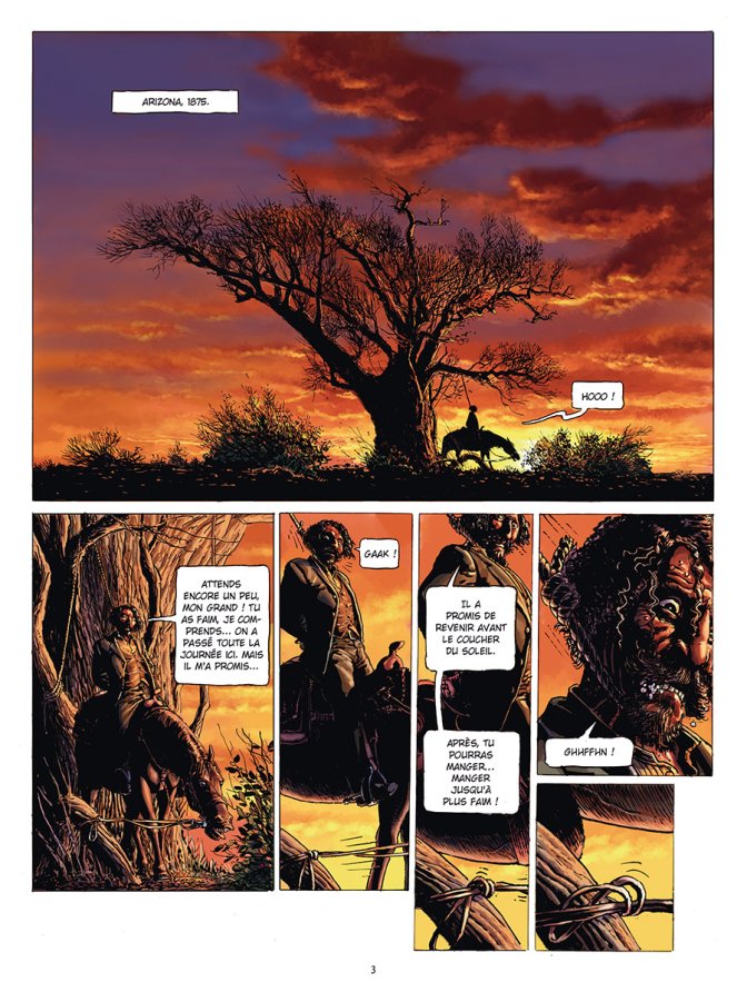 River Bass est un cow-boy black dont la vie n’est pas comme son nom, à savoir une rivière tranquille. Il ne veut pas d’histoires, mais celles-ci semblent lui courir après : accusé à tort d’être un déserteur et un bandit, après avoir patienté avec la corde au cou façon Tuco le Truand, on lui propose finalement un poste d’adjoint du Marshall pour infiltrer une bande d’anciens esclaves et de renégats noirs qui pillent la région. S’il n’est pas le meilleur tireur de l’Ouest, Bass possède en revanche une répartie qui fait mouche à chaque fois. Son humour et son ironie mordante, mais aussi son stoïcisme implacable devant l’adversité n’est pas sans rappeler un certain Mike Steve Blueberry, qui aurait croisé la route d’un Django de Tarantino, notamment avec un maître d’hôtel qui évoque par exemple Samuel Jackson. Croisement ou simple référence, l’ensemble est en tout cas réussi, avec une ambiance tantôt pleine d’humour décapant, tantôt d’un sérieux crispant.