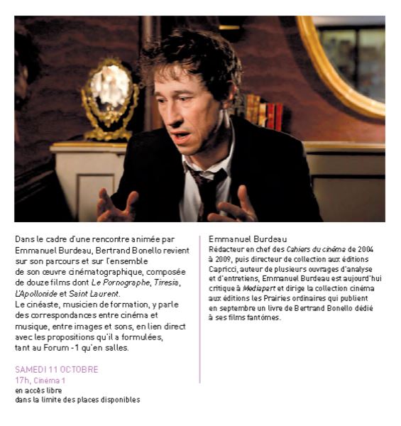 Masterclass Bertrand Bonello, samedi 11 octobre à 17h au cinéma 1 de Pompidou