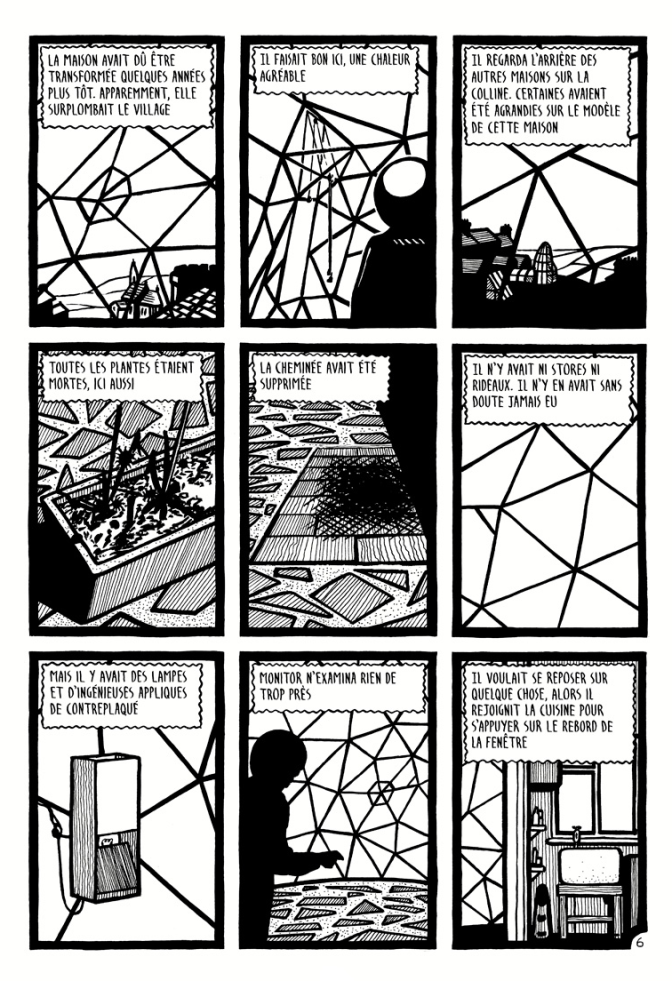 La première histoire, Passer sous le soleil, est assez étonnante : poème graphique, à la limite de l’Haïku, elle pose le ton de ce qui va suivre. Ou non ! Car Chris Reynolds nous propose des arrêts sur l’instant, des moments de pause. Personne ne semble pressé dans ces aventures. On peut prendre le temps, et on le prend. Marcher dans la nature, dans des villes, dans des zones désaffectées, en plein jour ou au cœur de la nuit, réfléchir sur le pas d’une maison, dans un bureau, ou sur un bateau. Qu’importe. Le temps s’écoule dans ce monde parfois irrationnel mais à nos yeux seulement, car les personnages ne se posent pas de questions sur ce qui les entoure. C’est ce qui nous rapproche de l’absurde.