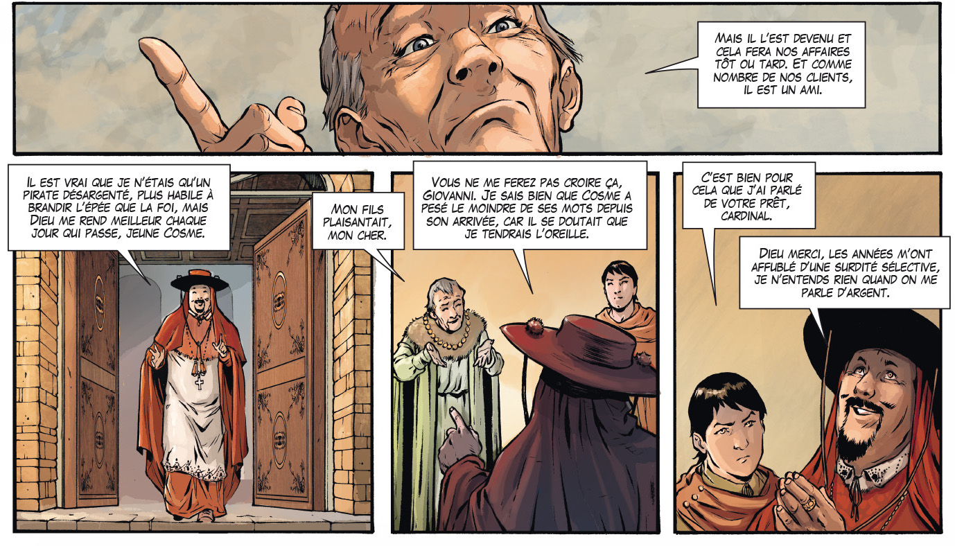 L’initiative reste cependant louable, et on ne peut qu’espérer une amélioration pour les prochains tomes, centrés sur les descendants de Cosme.