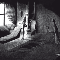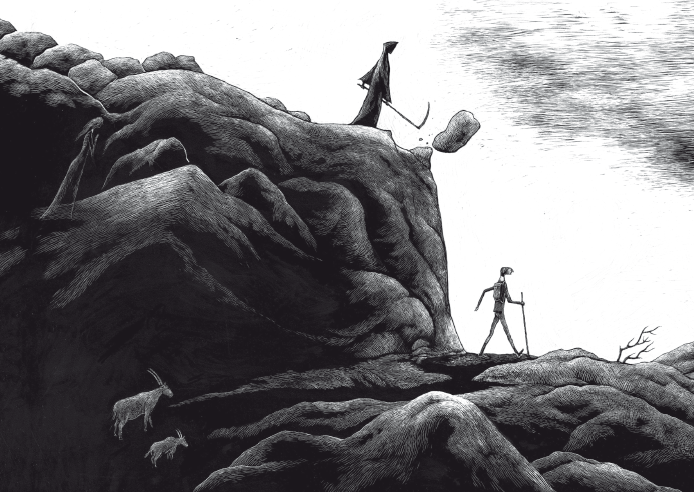 Autour d’une quarantaine de dessins, Nicholas Gurewitch joue avec les ombres et la lumière, en nous offrant une vision moderne et décalée de La Grande Faucheuse… en mode déprime complète.
