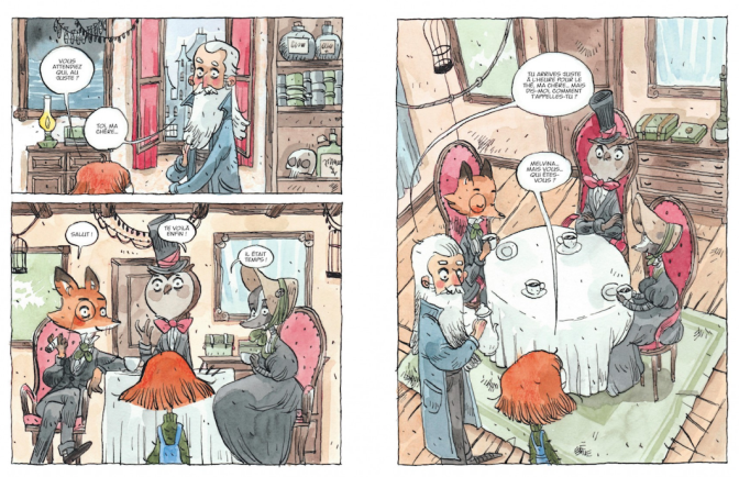 A mi-chemin entre Harry Potter, Alice au pays des merveilles et avec un zeste de famille Adams, Rachele Aragno nous plonge dans un univers de doux-dingues avec son premier roman graphique Melvina, une belle découverte graphique.