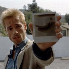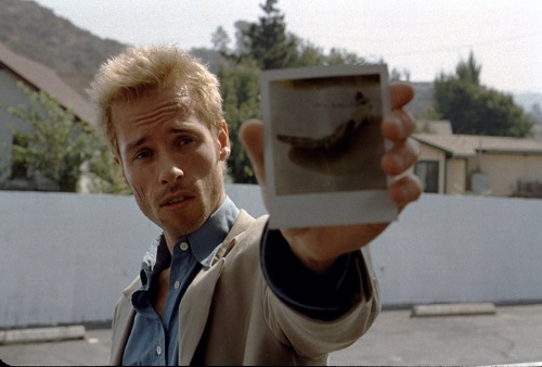 Christopher Nolan mène Lenny en bateau, ceux qu’il croise usent et abusent de lui. Mais Leonard, à son tour, fait de nous des victimes consentantes. L’axiome de base est respecté : le cinéma est un leurre et la caméra va de trahisons en entourloupes ! Un homme nous raconte ce qu’il vit, donc ce qu’il vit est ce qu’il nous raconte. Pas de raisons de douter. L’omniscience du spectateur est rudement battue en brèche, en grande partie du fait d’une construction scénaristique plus qu’atypique qui fait de Memento un film hors du commun. Un autre atout maître, ici, est sans aucun doute l’acteur principal, Guy Pearce. Son charme, son obstination agaçante, ses certitudes, que rien n’ébranle, ne l’en rendent que plus touchant, parfois même drôle. Son regard est une fenêtre sur une âme en lutte avec elle-même.