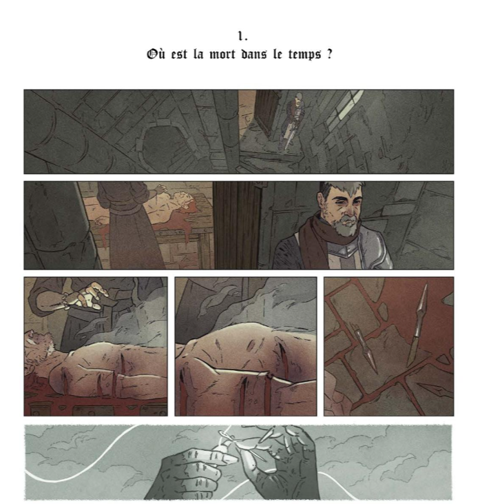 Critique : Avec Métamorphoses 1858, Sylvain Ferret avait apporté une touche de poésie subtile à un thriller/policier entre steampunk et fantasy. Pour ses Mémoires de Gris, le changement de ton et d’espace est complet : ses personnages, un chevalier qui souffre de ce que l’on nommerait PTSD et une guérisseuse finalement pas loin de la sorcière, se meuvent dans un univers qui oscille entre un historique très réaliste et la frange fantastique d’un conte du Graal version gothique. Pour être plus précis, il faudrait revenir à ce que proposait par exemple Hermann dans Bois-Maury pour retrouver une telle puissance de réalisme, à savoir que ses personnages sont sales, laids, touchés par les maladies et les perversions, à l’image de la société qu’elle a dû être (et qu’elle peut malheureusement être encore aujourd’hui), des lieux avec des champs non labourés et des chaumières usées, faute de bras pour les entretenir ou relever, des gibets et des geôles, des récits qui s’imbriquent à cause de la violence et non pas du destin, des rebelles qui se dressent faute de pain plutôt que de causes à défendre. Il y a un peu d’un Robin des Bois qui serait proche de la réalité, avec cette bande de hors-la-loi, un peu d’un Ivanhoé qui ne serait jamais revenu intact de ses voyages, un peu aussi de ce Sigurd d’Hermann, puisque le fantastique va finalement s’inviter dans une histoire qui n’en avait pas forcément l’objectif. On reste étonné, presque brutalisé par ces hommes, ces femmes qui ont vécu une horreur protéiforme, qui dérange le lecteur, qui pervertit certains personnages secondaires ou principaux, qui montre qu’elle est un cycle qu’il est difficile de briser, et donc une leçon universelle et ici artistique.