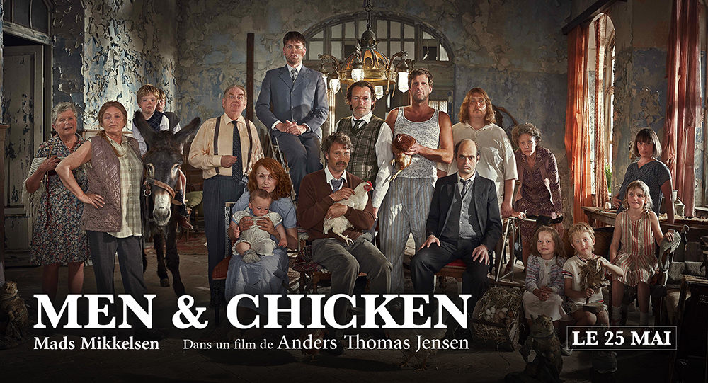 Notre avis : Men and chicken commence comme un road movie dans lequel deux frères vont en quête de leur père génétique après la mort de l’adoptif, un canevas vu et revu que Anders Thomas Jensen va rapidement désactiver dès lors que les deux désaxés vont s’installer dans la maison en ruine qui abrite leurs demi-frères et ce qui reste de leur véritable père. À l’image du personnage incarné par l’immense Mads Mikkelsen, tour à tour touchant, dégoûtant, obsédé, violent, impulsif ou enfantin, les membres de cette famille recomposée vont former un véritable freak show, de fabuleux rednecks danois, partageant leur couche avec poules et fromages, et arborant toutes sortes de déformations corporelles. Il n’en fallut pas plus pour que le film soit rapidement accusé de discrimination, en particulier envers les « becs de lièvres » soit disant associés ici à un retard mental proche de celui de l’animal.