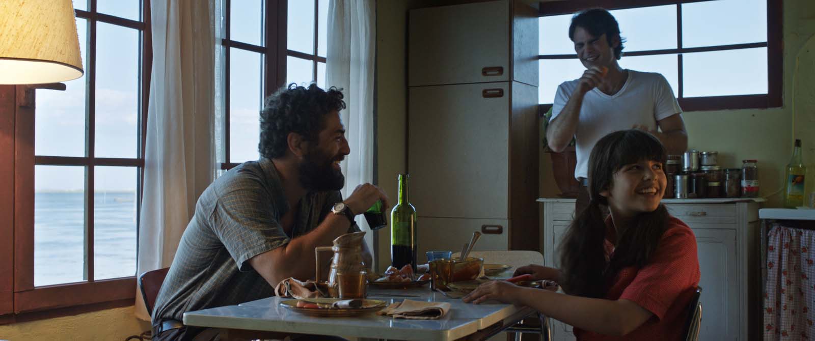 Luisa (la jeune Naomi Biton épatante de naturel et de maturité) se revendique française. Elle va à l’école de la République, parle un français impeccable, aide sa mère dans les démarches administratives. Elle est le pivot de la famille face à un père qui, après avoir fui la dictature portugaise, ne pense qu’à revoir son pays et n’a jamais renoncé à sa culture d’origine. Bien que tout les oppose, c’est pourtant à elle que Joao, le père, lègue son histoire et une émouvante relation père/fille où les rôles s’inversent (la fillette veille sur son père qui a tendance à noyer son chagrin dans l’alcool jusqu’à se laisser emporter par la violence et apprend à vivre avec des secrets bien trop lourds pour elle) s’établit, réservant au spectateur de biens jolis instants de poésie rehaussés par ce décor sauvage de Camargue. Entre fleuve et mer, cette terre de bout du monde, entre beauté et isolement, accentue justement les contradictions de cette famille qui peine à trouver sa place dans cet espace de vie ensoleillé et illimité. Le choix de tons pastels piqués au milieu de cette nature flamboyante et disséminés à l’intérieur de cette maison décatie sans être pour autant miséreuse nous conduit sans détours au cœur des tourments de ce couple atypique entre haine et désespoir.