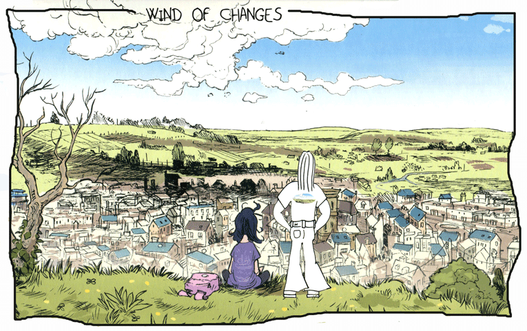 Alors oui, on ne sait pas trop où on va, à la suite de cette jeunesse en marche, mais on y va ! Et avec plaisir. Cette simplicité de l’histoire peut déstabiliser et on referme ce tome en se disant qu’il nous manque quelque chose. Une résolution ? Chaque personnage s’engage sur un chemin. Des conflits ? Comme dans la vie, ils n’éclatent pas forcément au grand jour et il n’y a pas de scène homérique de défi ou de vengeance mais certaines tensions sont bien là, sous-jacentes. Des obstacles ? En fait, Merci est son propre obstacle et c’est sans s’en rendre compte qu’elle va le franchir, avec l’aide de Cheneval le poète, ou du moins de ses œuvres. Rien ? Oui, peut-être qu’il ne manque rien si on tient compte que Zidrou montre le chemin vers l’idée et non la mise en place d’un projet. Alors quand l’histoire s’arrête, on est étonné, l’épilogue (double, attention) surprend. Et puis non, on comprend avec le temps - ce fameux temps – qu’il ne manque rien, car la profondeur se cache derrière la légèreté, car la sensibilité se dissimule dans le quotidien, car l’amour vole au hasard des pages.