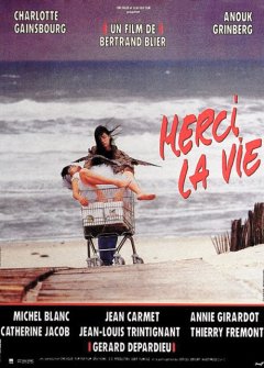 Au fond, mieux vaut se laisser aller à ce maelstrom d’images et de sons, oublier les facilités (l’équation nazisme = SIDA est au moins discutable) et jouir des décalages permanents, des échanges verbaux surprenants. Merci la vie est une sorte de zapping (le mot est de Blier) conçu comme une expérience limite farcie de mises en abyme et de coqs-à-l’âne ; c’est aussi et peut-être surtout une déclaration d’amour au cinéma, celui qui envahit la réalité au point qu’il se confond avec elle, qui fait que la vie semble perpétuellement mise en scène au point que, nus et parqués dans un wagon, les gens cherchent la caméra. Pour cette passion, mais aussi pour l’humour audacieux et les répliques parfois hilarantes, ce film porté par des acteurs prodigieux reste comme une tentative inaboutie, excessive mais palpitante.