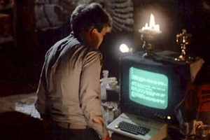 Stanley effectue ainsi une messe noire avec des objets anciens pour invoquer les forces du mal. Jusque-là, on est dans du classique. Sauf que pour correspondre avec le démon, il se sert d’un vieil ordinateur dont le fond d’écran est verdâtre. On voit bien qu’en cette année 1981 on en est à la préhistoire des ordinateurs et cette vieille machine fait franchement datée ! Tout cela donne un côté bien kitsch à Messe noire. Mais cela est plutôt amusant.