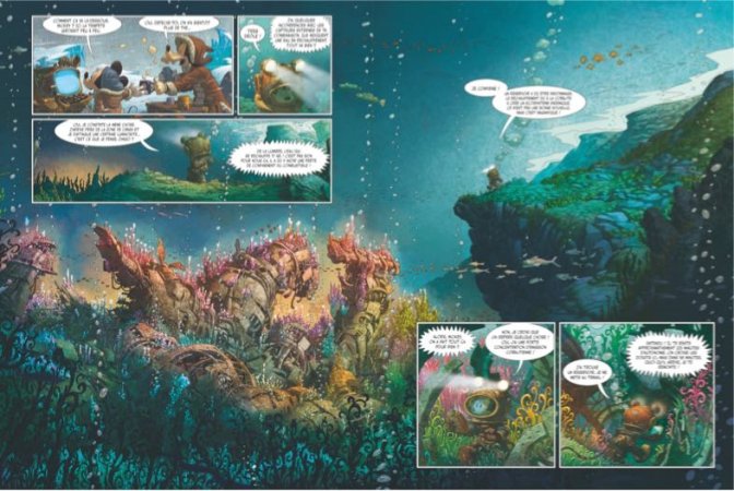 Résumé : "Le pitch de ce nouveau Mickey. Le monde est enfin en paix après des années de conflits en tout genre. Mickey, Minnie et Dingo sont devenus des récupérateurs. Leur mission est passionnante : explorer les épaves de l’ancienne guerre en quête de ressources technologiques. Activité dans laquelle ils peuvent compter sur Pat Hibulaire pour leur mener la vie dure ! Un jour, répondant à une annonce, nos trois comparses mettent la main sur un cube étrange situé dans les profondeurs de l’océan. Ils n’imaginent pas les véritables motivations de leur commanditaire ni l’étendue des pouvoirs de cet artefact, à première vue inoffensif..."