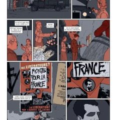 Le trait gris, noir et d’un rouge orangé lugubre, directement issu du nuancier de l’affiche originelle, fait embarquer le lecteur dans un album aux allures de voyage dans le temps, revivant une époque d’images en noir et blanc, où un filet sanguinolant se serait invité sans pour autant paraître incongru. Nets, clairs et déterminés, les visages ont cette pâleur des morts en sursis, héros tragiques d’une pièce qu’ils ont choisi, et leur gravité n’empêche pas des moments de joie, d’espoir ou d’amour, preuve que ces hommes et femmes étaient bel et bien humains. Ce sont ces dessins là qui font le plus mal, lorsque tombent plus loin les lignes d’une sentence exécutée par la gestapo ou la police française, mais ils permettent de graver un souvenir fort, plus que les mots, plus que les chiffres, dans l’esprit du lecteur et des prochaines générations.