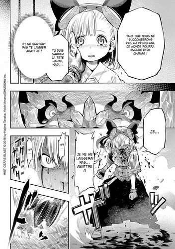 Pas de couleur évidemment, mais un style Nekketsu aux accents plus Kodomo que Shonen, qui tire vers un public plus jeune et une violence sans effusions de sang ou insoutenable. A bien des aspects, Mist Gears Blast est une bonne décharge d’adrénaline sympathique, où il faut imaginer Nagi avec une teinte rose dans les cheveux, du bleu azur et de l’or partout malgré la brume. Bref, c’est un bon remède à la morosité pour tous les âges, et ce même dès le plus jeune.