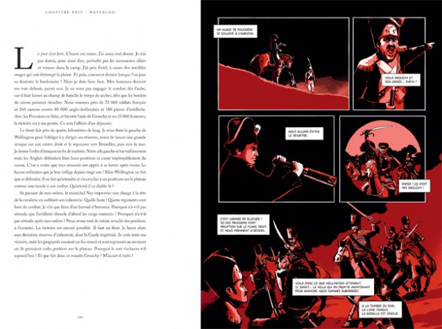 Aussi, même si c’est sans sans doute une gageure de réussir à condenser toute la vie de Bonaparte en une centaine de pages (dont la moitié d’illustrations), il aurait été appréciable d’avoir davantage d’éléments contextuels entre les chapitres. En effet, certaines d’entre eux requièrent de bien connaître l’histoire de la France, et plus particulièrement la période agitée de la Révolution, pour comprendre exactement de quoi l’Empereur parle.