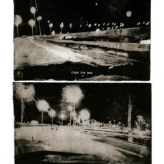 Ces photos mises bout à bout, organisées en planches, deviennent Moloch. Plus qu’un récit, c’est une atmosphère, dans laquelle l’usine est une bête qui avale et digère les hommes. Le gamin s’y perd dans un brouillard de métal, crache de la limaille, avant que des ombres ne l’aident à retrouver son chemin. Les eaux-fortes donnent le sentiment d’être devant des tirages photographiques plongés dans le bain révélateur. Comme si l’auteur nous faisait l’honneur, en même temps que lui, de la découverte. Visuellement, les dessins sont assez proches d’aquarelles grises, de dégradés ternes comme des successions de dépôts sombres, comme des images de plomb. Michael Matthys explique sa technique graphique : l’aquatinte, ou la gravure sur zinc passée plusieurs fois à l’acide. C’est l’âpreté de l’univers sidérurgique qui contamine la méthode de l’artiste.