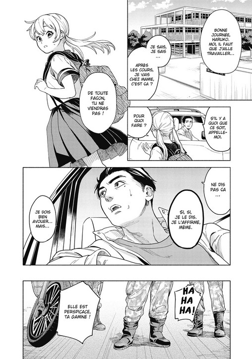 Critique : Ce gros premier tome ne se contente pas de poser le contexte et de lancer l’intrigue, il la fait avancer avec de multiples rebondissements. Si tout va vite dans ce manga, on a quand même le temps de s’attacher aux personnages. Raikichi, père perdu qui élève seule sa fille et doit faire face à l’adolescence et toutes les crises qui vont avec. Haruo qui voit son corps changer trop vite et qui réagit comme elle peut, essayant de porter seule un lourd fardeau. Et le fantastique qui s’invite en pleine histoire, poussant le père et sa fille à se confronter l’un à l’autre et à percer les abcès afin de surmonter le danger.