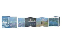 L’ouvrage est soigneusement présenté dans un coffret. Il contient d’un côté les images et de l’autre un livret descriptif clair de l’auteur. Les toiles sont assemblées selon une frise pliée en soufflet, qu’on peut par exemple accrocher sur un mur ou étendre sur une longue crédence. Elle permet d’évoluer entre les images et constater la grande cohérence de la palette du peintre, comme on découvre les paysages successifs lors d’une promenade à Giverny. Nous voilà passant le pont vers les nymphéas, admirant le reflet du ciel et des plantes mus par le pinceau.