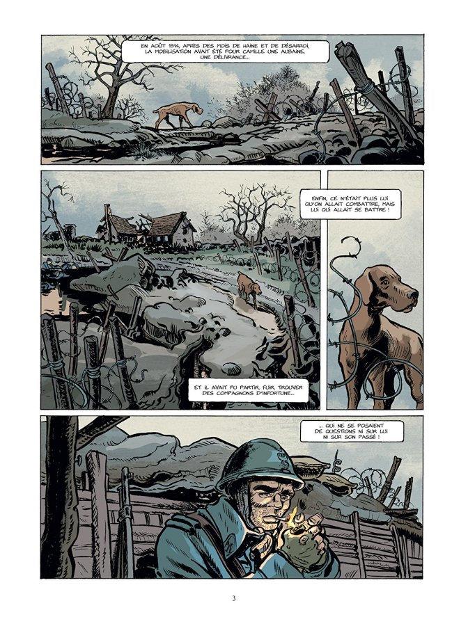 L’homme et le chien vont donc s’épauler l’un l’autre. Mais Camille porte un lourd fardeau au fond de lui et s’il ne veut pas renouer avec les tranchées, il n’a pas spécialement envie d’être démobilisé et renvoyé à l’arrière. Cette curieuse ambigüité fait tout le sel du personnage, dont le caractère fermé peut, à certains moments, l’isoler de nous.