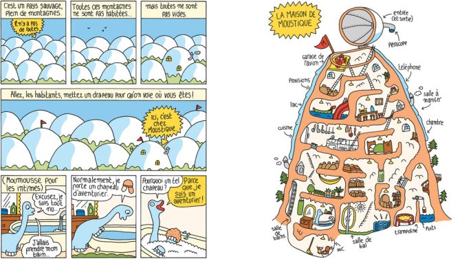 Résumé : Moustique, Dinosaure au cou pour le moins flexible et toujours affublé d’un chapeau d’aventurier (qu’il possède en plusieurs exemplaires au cas où), se tient toujours prêt à porter secours au volant de son avion. Ses aventures l’amèneront loin, jusque dans la lune en passant par le fond de l’océan à la rencontre de personnages touchants et polissons.