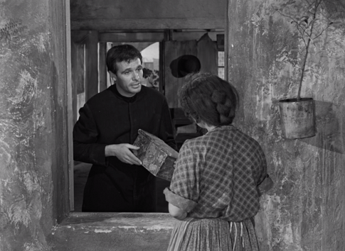 Si ce prêtre en rupture de ban pourrait s’apparenter à un Don Quichotte utopiste, Buñuel démolit sans pitié cette analogie et dresse un portrait bien amer. Errant dans un Mexique ravagé par la famine, les épidémies et les injustices sociales, la figure de l’ecclésiastique, désormais dépouillé de sa soutane, ne sauve rien ni personne. Sa mansuétude, sa charité, sa bonté ne sèment que violence, injustice, chaos et désolation autour de lui. Lorsqu’il accepte de travailler en échange d’un repas, on lui rétorque qu’il vole le travail d’un autre, ce qui déclenche une violente rixe. Mais notre homme est déjà loin à cueillir des fleurs, inconscient et incapable de réaliser quel drame il a déclenché. Telle est la contradiction fondamentale exprimée par un personnage qui tient plus du Candide que du Messie.