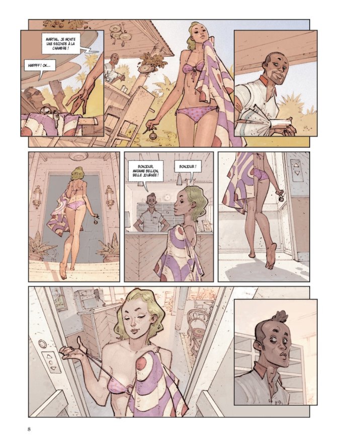 Le dessin de Fred Duval propose un cadre ensoleillé, des shorts à fleurs, des palmiers et un volcan pour insérer les personnages de Michel Bussi. Au-delà de cet état paradisiaque, La Réunion livre aussi ses routes bondées et poussiéreuses, ses baraques de taule fragiles, ses maisons de vacances un peu abandonnées, ses enfants jouant dans les rues, pour une immersion qui va au-delà de la carte postale touristique. Si l’on rajoute un soupçon de désir, un bon poids de souvenirs qui se décharge lors de dénouement, sans pour autant changer le style graphique, la noirceur ou l’érotisme viennent seulement teinter les planches sans les tâcher.