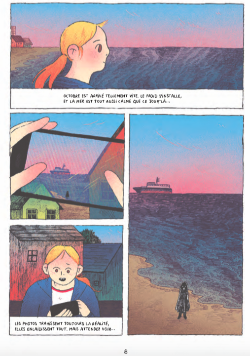 Après Proches rencontres qui traitait des OVNI, Anabel Colazo – que nous avions rencontré lors du festival d’Angoulême 2019 – poursuit l’exploration du paranormal avec l’apparition d’un fantôme. En dépit du surnaturel, le récit n’épouse pas du tout les codes de l’épouvante. Au contraire, Anabel Colazo utilise le paranormal pour traiter du quotidien, et le surgissement du fantôme constitue pour les personnages un défi qui les force à l’introspection et les confronte à des choix. On ressent néanmoins l’attrait de l’autrice pour la mise en scène des théories loufoques nées sur la Toile. Mais dans son récit, le fantôme incarne avant tout le deuil inachevé et les peurs profondes qui traversent chacun d’entre nous. Par ailleurs, l’autrice dresse en creux le portrait d’une jeunesse sans horizons et aux perspectives étroites.