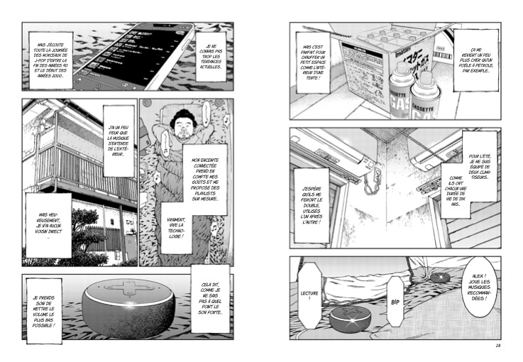 La première partie du manga est explicative et conforme à l’idée que nous nous en faisions lorsque nous en avons lu la quatrième de couverture : un titre qui surfait sur l’époque COVID, avec un petit goût de déjà-vu. On entre dans le quotidien de Kentaro, l’auteur ne nous cache rien et nous parle même de l’utilisation d’un urinal. Notre héros liste également quelques-unes de ses inventions afin de se faciliter la vie, on repense forcément à sa consigne improvisée.