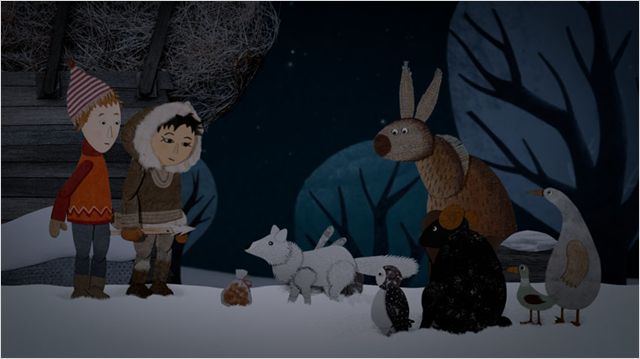 Sur le postulat de départ d’une petite ville déstabilisée par une soudaine et improbable tempête de neige en plein été, un jeune garçon du nom de Philémon découvre qu’une famille d’inuits a élu domicile sur un rond point proche de sa maison, tels des réfugiés climatiques. Commence alors un rapprochement inattendu avec le peuple venu du froid, dans un esprit de partage, d’entre-aide et de découverte. On signalera que la langue inuit y est volontairement non sous-titrée pour permettre de solliciter l’oreille des enfants. Narré avec beaucoup de tendresse, sur une musique douce et apaisante, Neige et son univers plane, drapé d’un étonnant manteau blanc, peuplé d’animaux irrésistibles, nous fait fondre sur place. Les images défilent à l’écran dans un art du glissement plein de dextérité. Voilà une entreprise graphiquement séduisante, qui de plus, à la bonne idée de colporter aux yeux des enfants un message pertinent à travers un petit choc des cultures profondément humain.