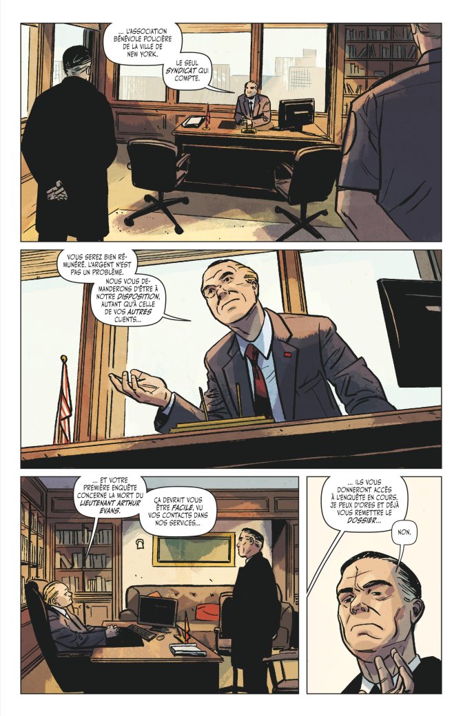 Résumé : Easton Newburn est un détective privé chevronné qui met ses talents au services des principales familles du crime de New-York. Engagé par l’une ou l’autre faction, il résout les crimes qui menacent la paix précaire qui règne entre les différentes organisations mafieuses. Bien introduit chez les policiers, ses anciens collègues, Newburn marche cependant sur un fil : la moindre erreur pourrait faire de lui une cible. Dans ce contexte, le détective engage une jeune femme, Emily, qu’il forme aux rouages du métier…